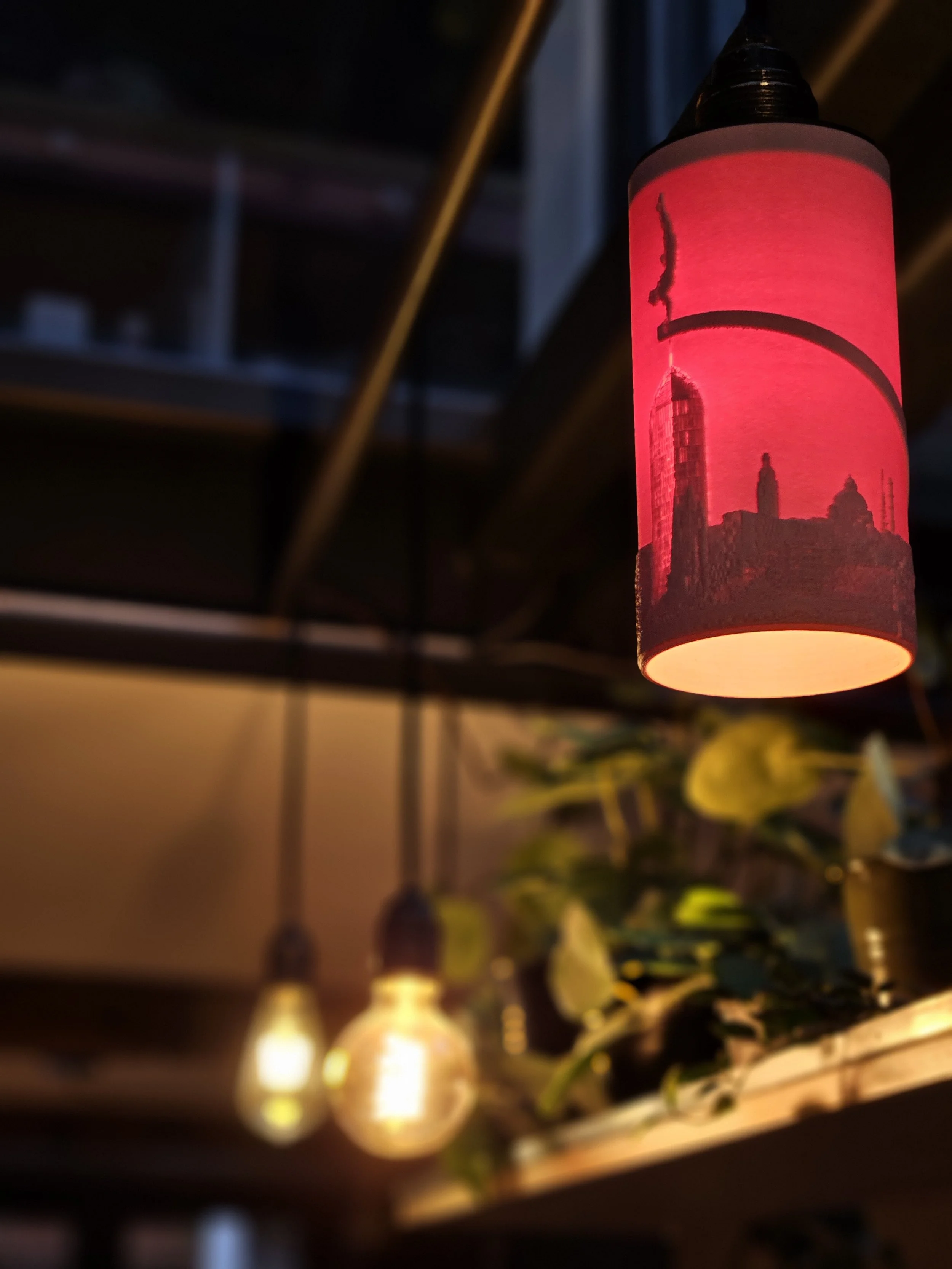Silhouette familière des Liégeois, ce lithophane se décline en lampe de chevet ou suspension.